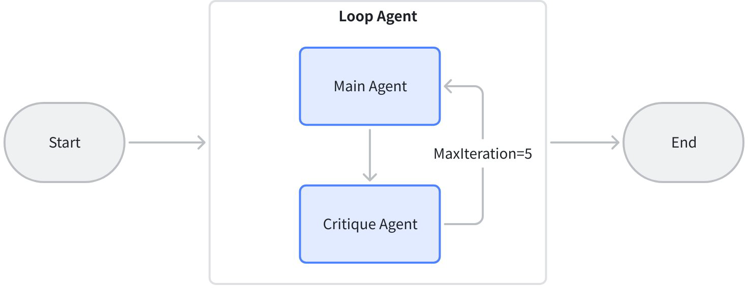• 循环 (Loop Agent):重复执行子 Agents,直至满足特定的终止条件