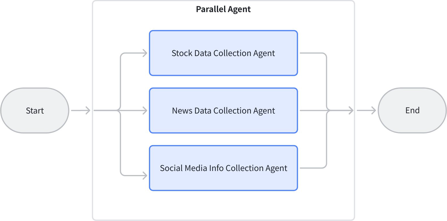 • 并发运行:Parallel Agent 能够同时从多个数据源启动信息收集任务,处理效率相较于串行方式显著提升。