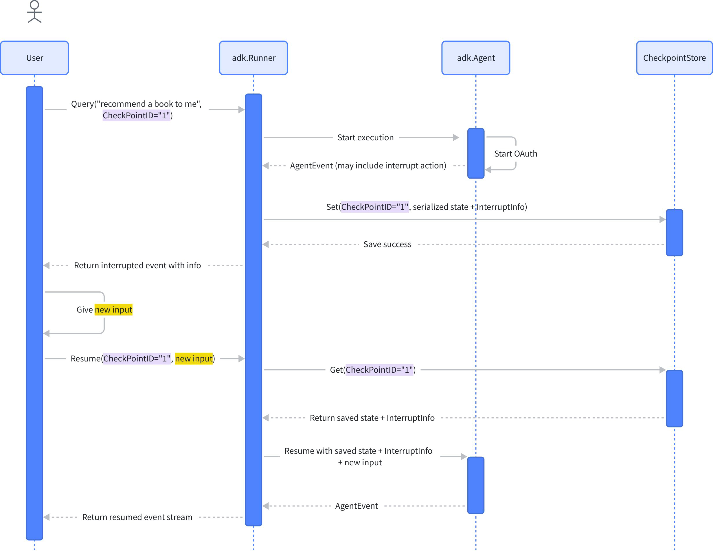 • 事件驱动:通过迭代 runner.Query 和 runner.Resume 获取事件流,处理执行过程中的各种事件及错误。